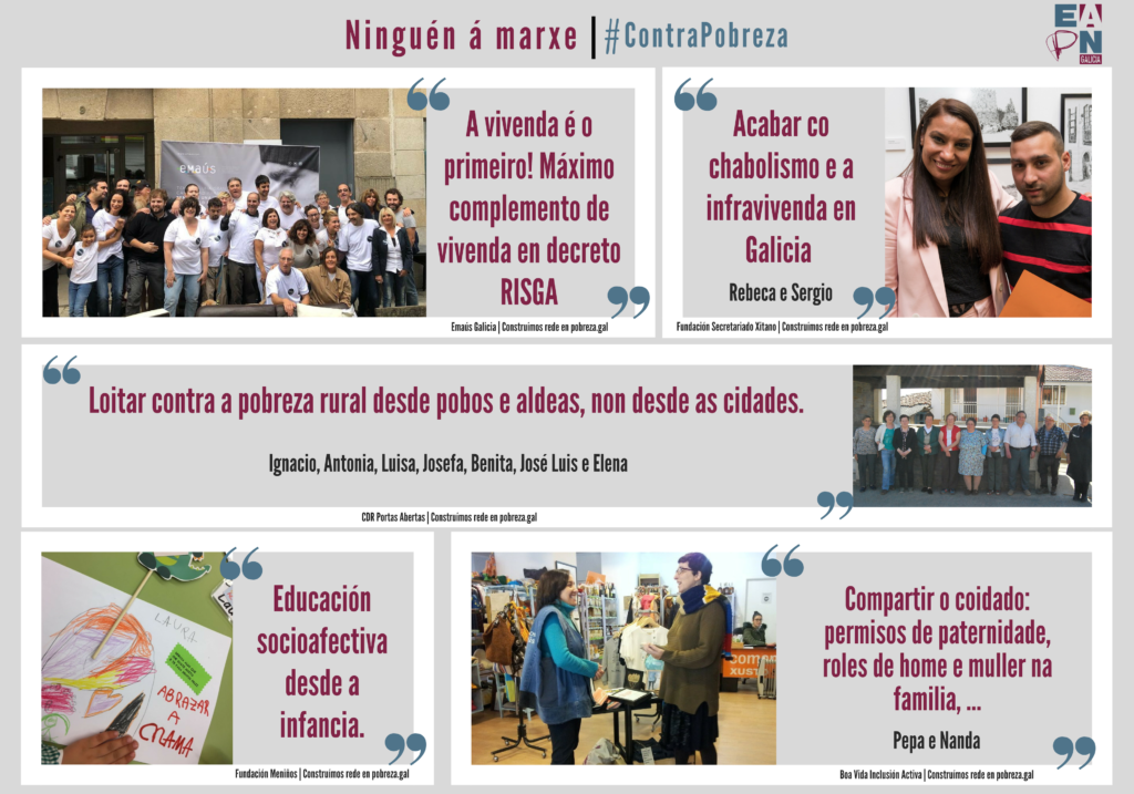 Ao tempo que a exposición, organizacións de accións social e cooperación integradas en EAPN Galicia e EAPN España lanzaron a campaña #ContraPobreza en redes sociais.